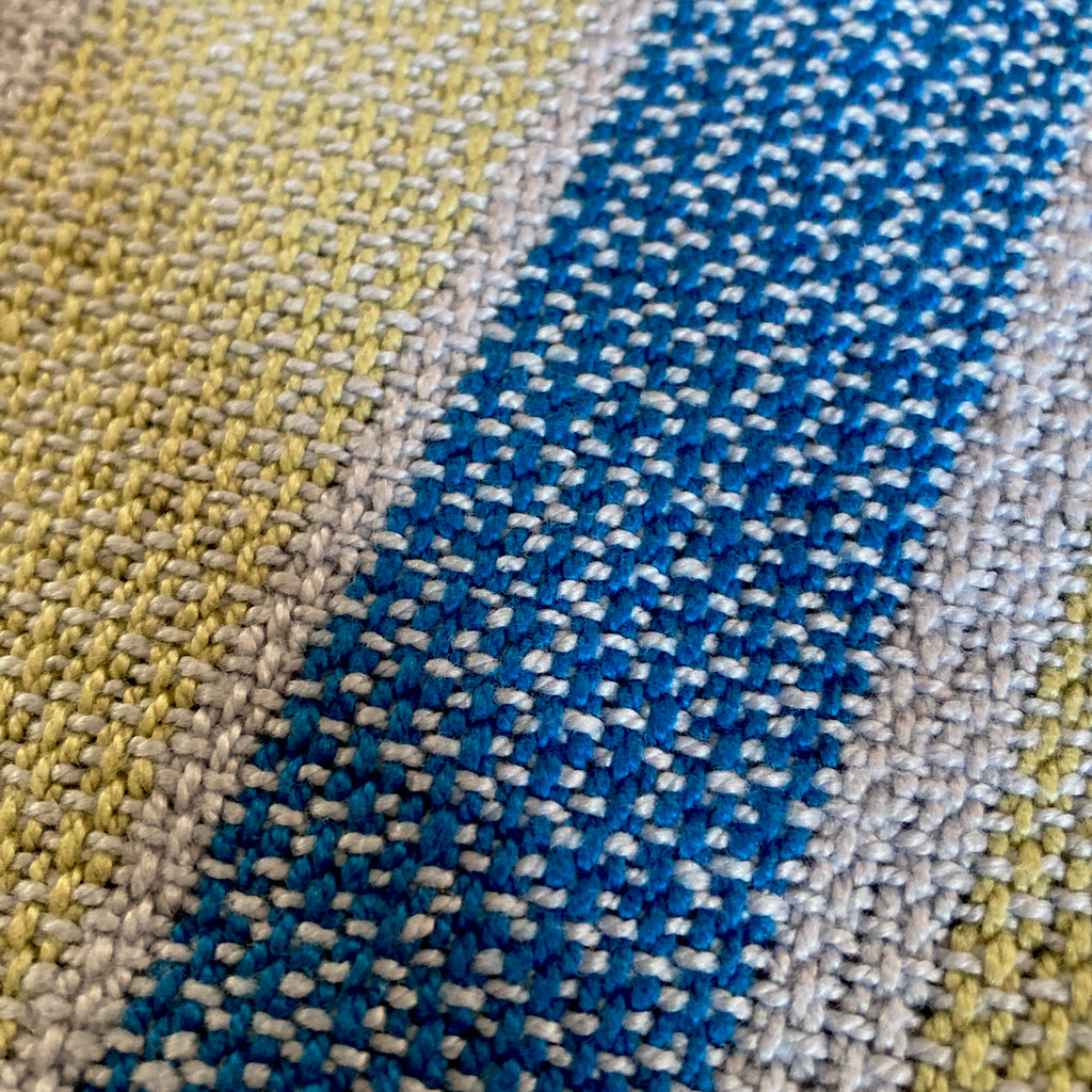 Perfect stripes in a variation of twill called "Halvorsen's #5 Pebble Twill".Celestial Blue-Willow Green-Royal Blue/Celestial Blue15 1/2" x 29"Cotton/Machine Wash Cold/DryQuantity Available: 1